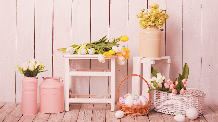 Trước hết, hãy trang trí cửa sổ salon với các giỏ hoa mùa xuân như hoa thủy tiên, tulip, và đầu tư những chiếc kệ màu sắc để trưng bày sản phẩm của bạn. Tiếp theo, thêm các quả trứng màu sắc rực rỡ, hình ảnh thỏ bunny, gà con ở quầy lễ tân, phòng chờ và khu vực làm việc. Nó sẽ rất lý tưởng để thúc đẩy tâm trạng khách hàng trở nên hào hứng, vui tươi hơn.